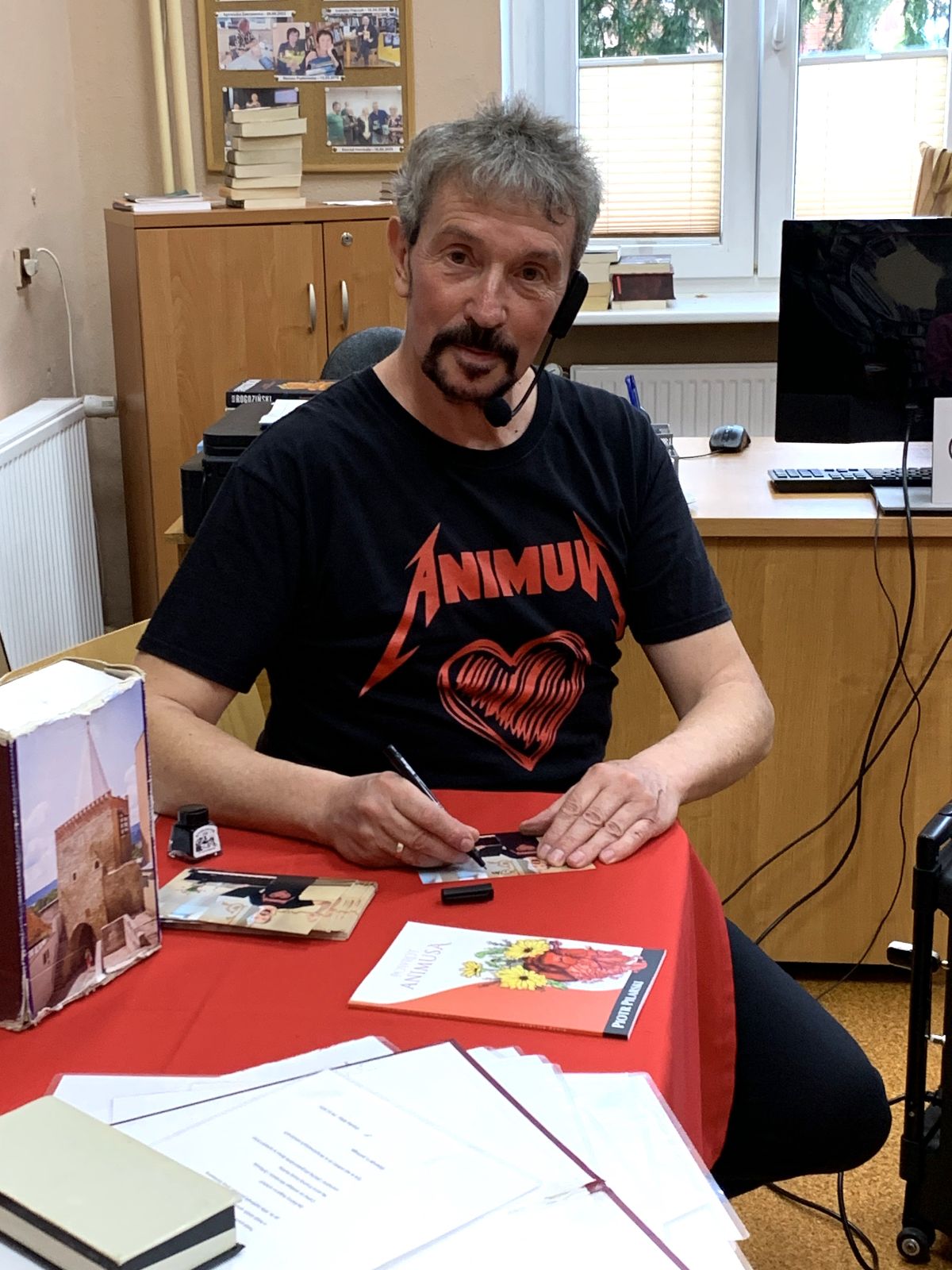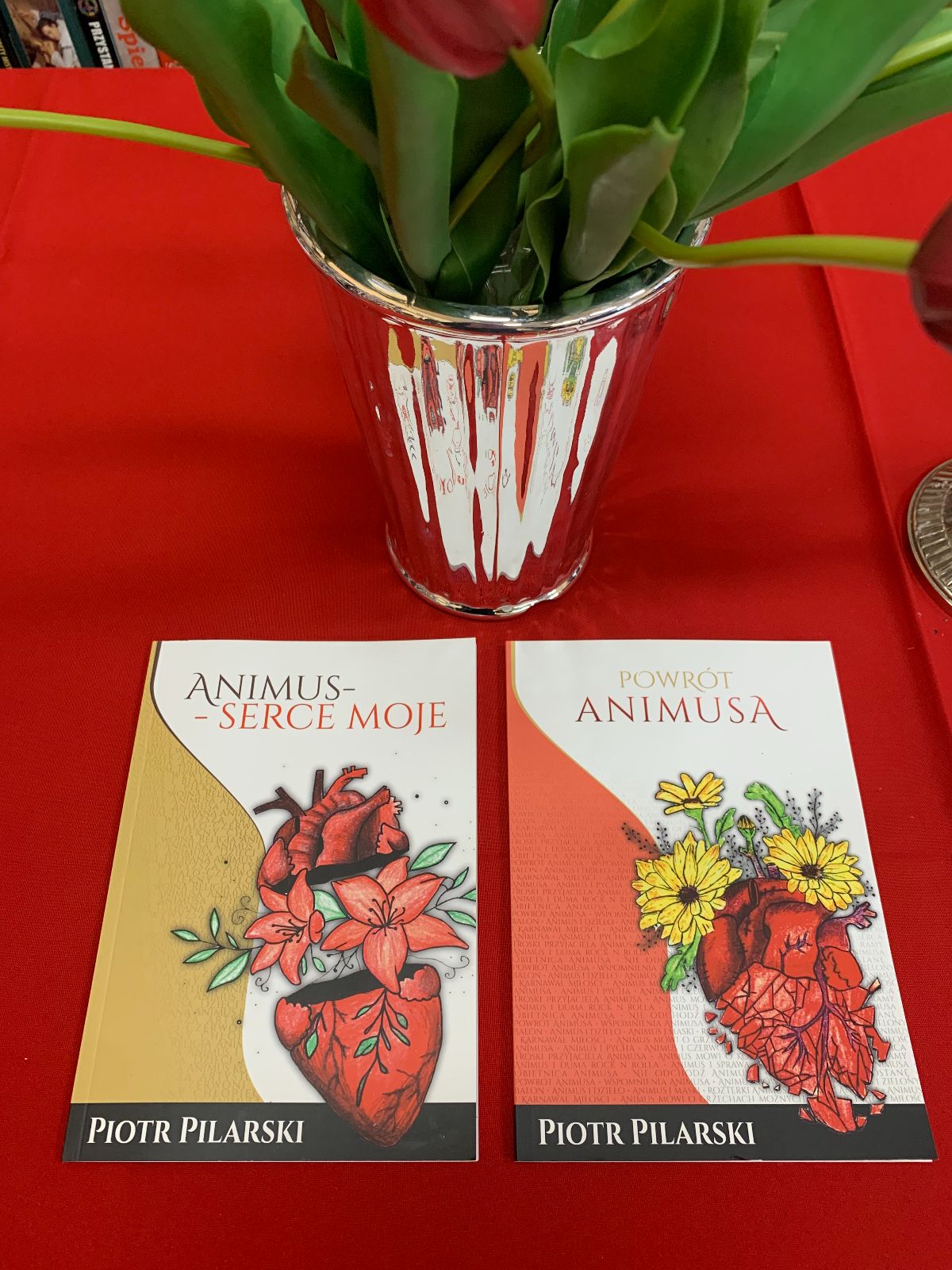 Pan Piotr jest autorem licznych tomików wierszy, z czego najnowsze, zaprezentowane podczas spotkania, to „Animus – serce moje” oraz „Powrót Animusa”.