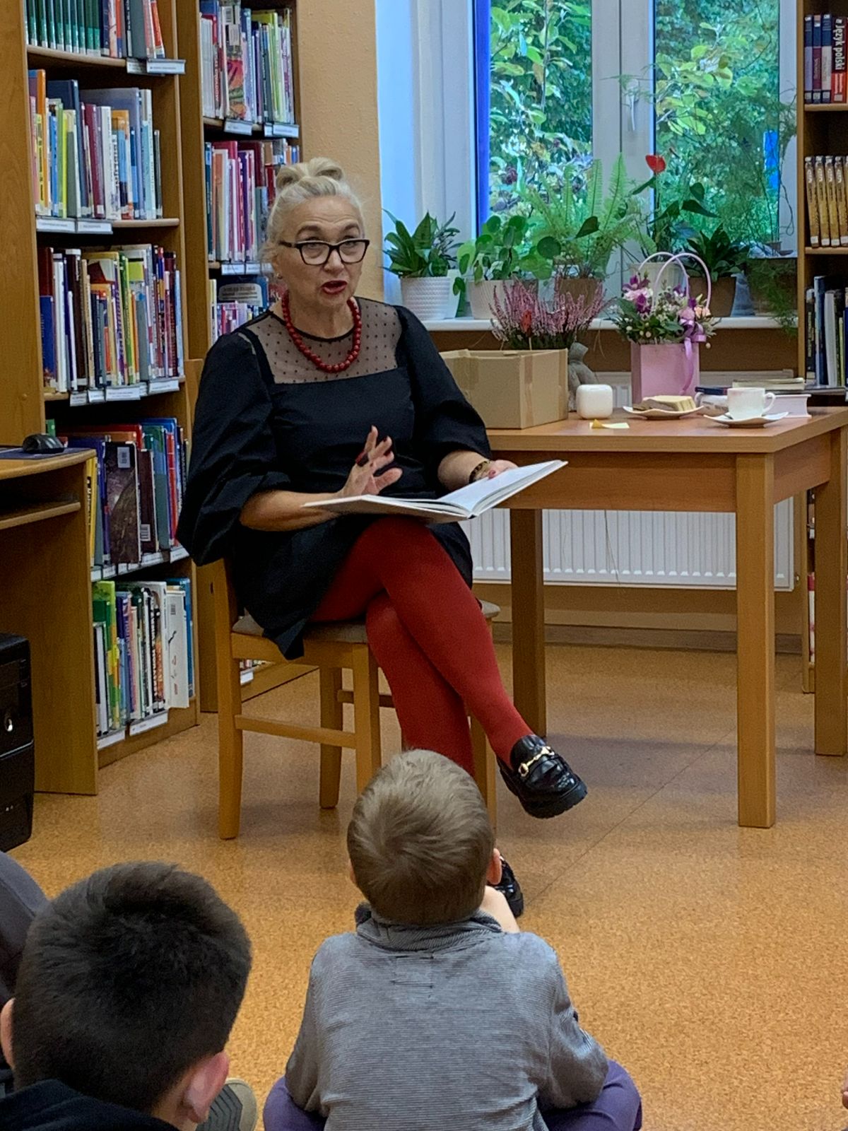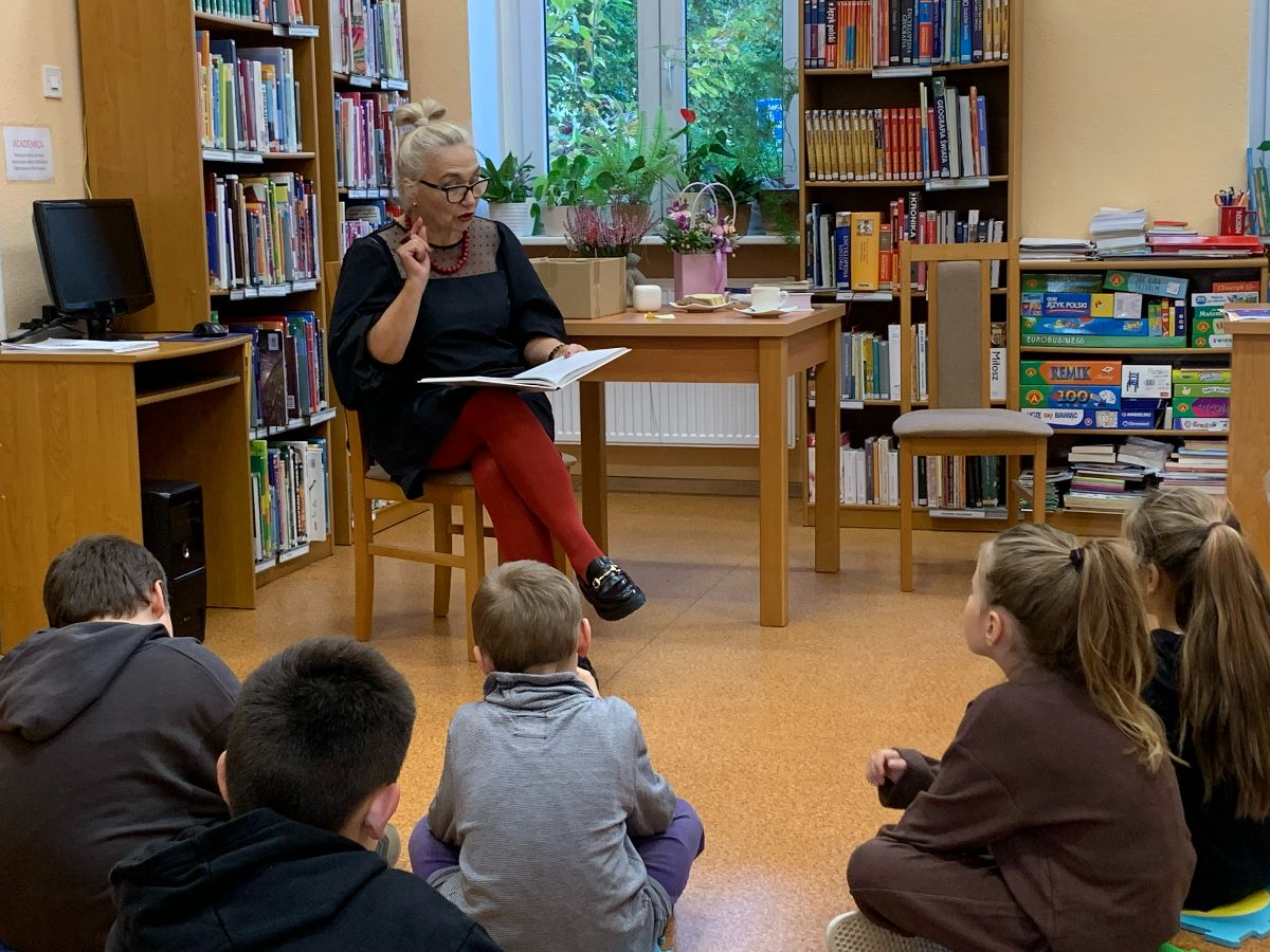 Wydarzenie rozpoczęło się od odczytania bajeczki przez Gościa Specjalnego, pani Beaty Woźniak – autorki publikacji o tematyce historycznej oraz utalentowanej rękodzielniczki. Nasza lektorka wspaniale wczuła się w tekst, dając dzieciom przykład pięknego czytania. Następnie zadała kilka pytań dotyczących treści bajki o wtórnym wykorzystywaniu przedmiotów, w tym: „Do czego możemy wykorzystać pusty karton?”. Młodzi Uczestnicy wykazali się pomysłowością, wynajdując różne możliwości przetworzenia pozornie banalnego przedmiotu z tektury – od labiryntu dla chomika po kwietnik. Dzieci wspólnie zastanowiły się także nad przesłaniem mitu o Dedalu i Ikarze. Jak wiele można osiągnąć dzięki twórczemu myśleniu? I czy my także możemy sami zbudować skrzydła? Otóż dzięki realizowaniu marzeń i dzielnemu dążeniu do celu każdy z nas może takie „skrzydła” uzyskać.