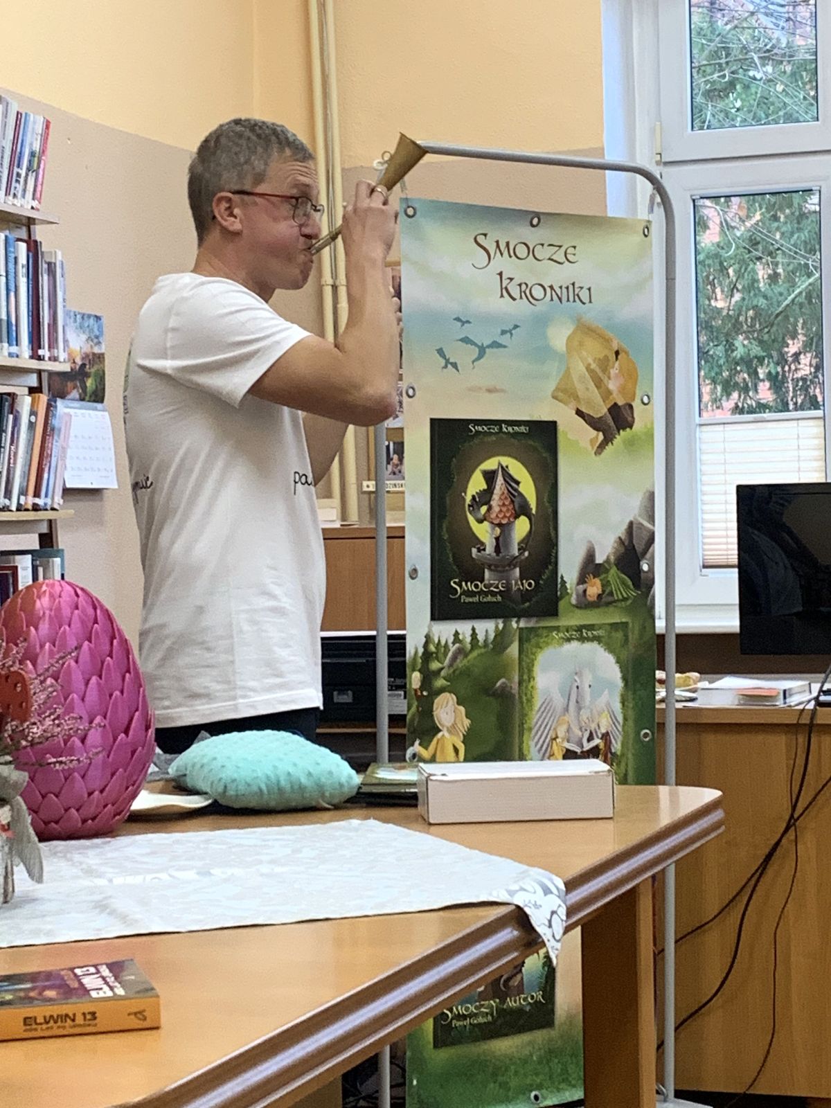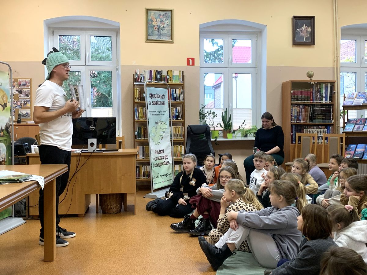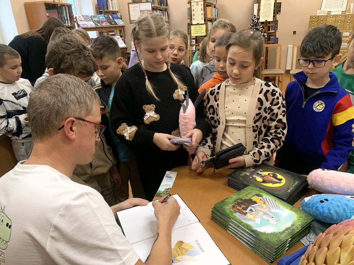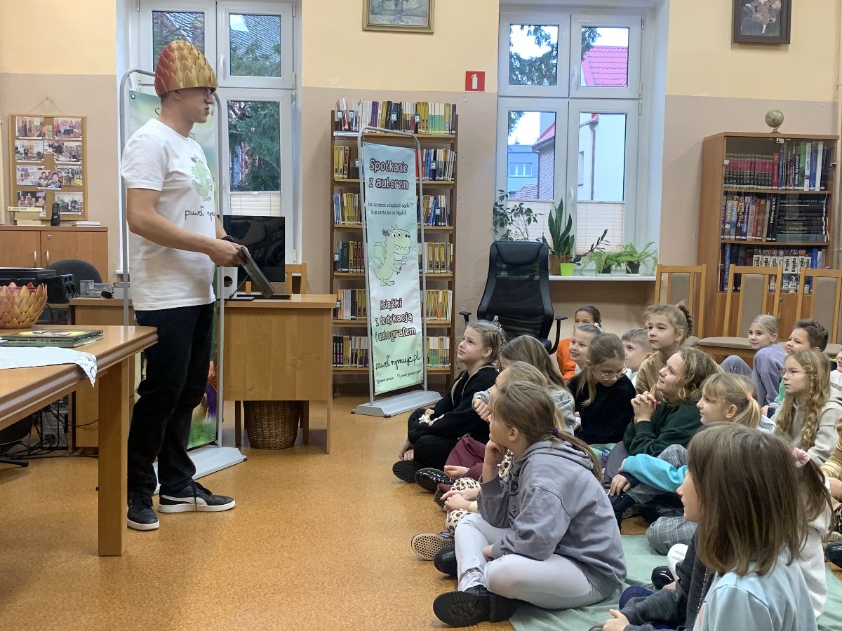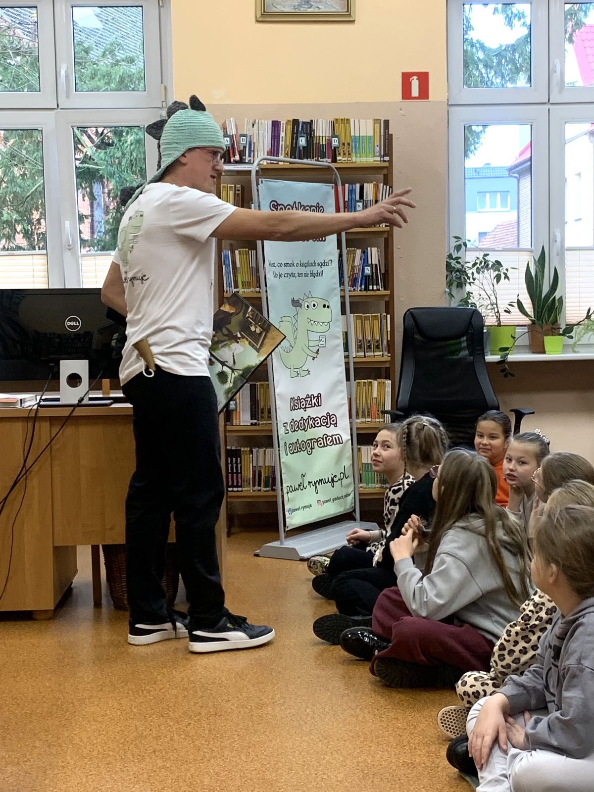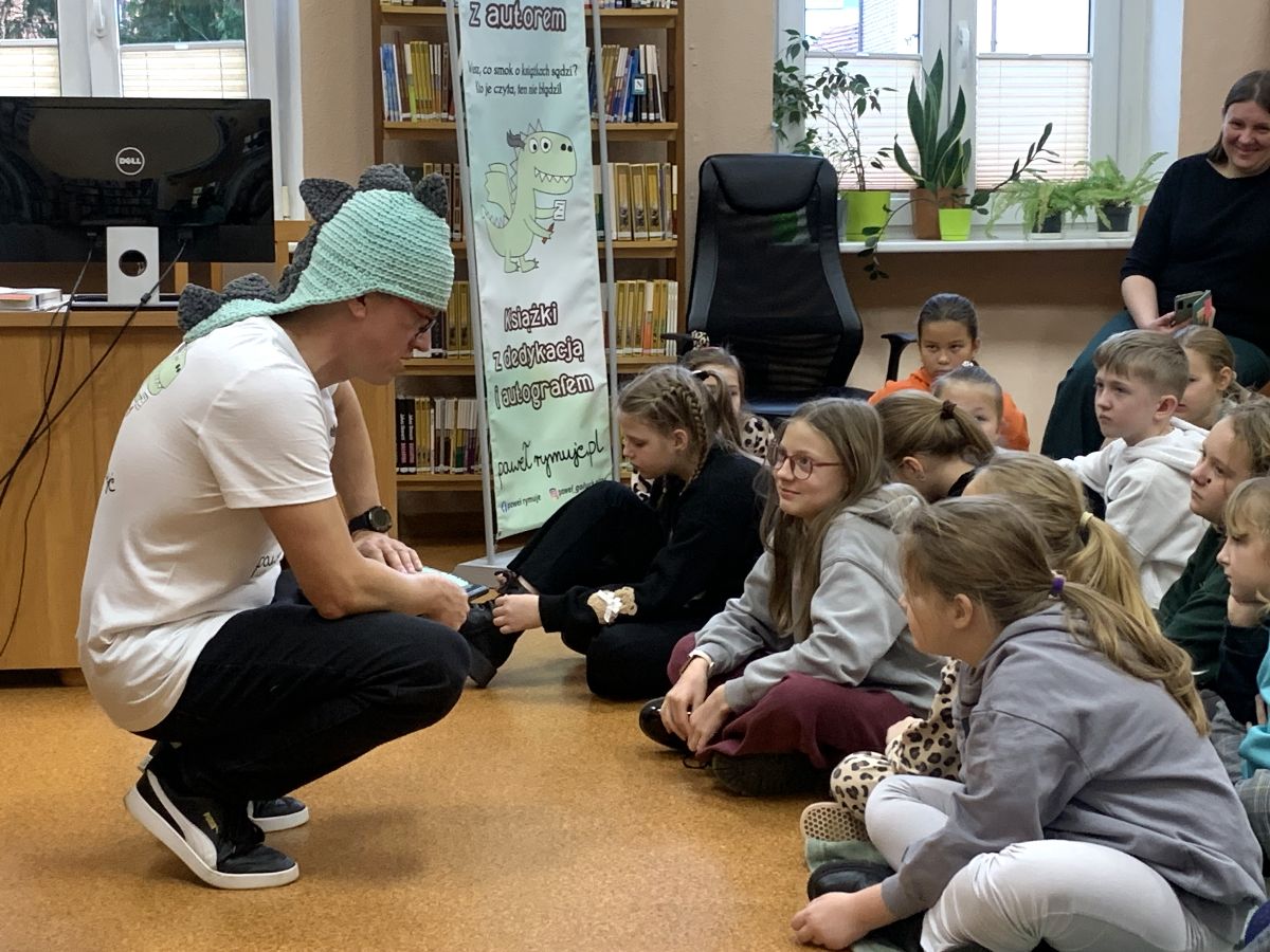 W środowy poranek, dn. 19 listopada 2025 r., gościliśmy w naszej Bibliotece p. Pawła Gołucha – autora kilkudziesięciu wierszy dla dzieci, tekstów piosenek oraz prezentujących szlachetne wartości wierszowanych książek z serii „Smocze kroniki”.