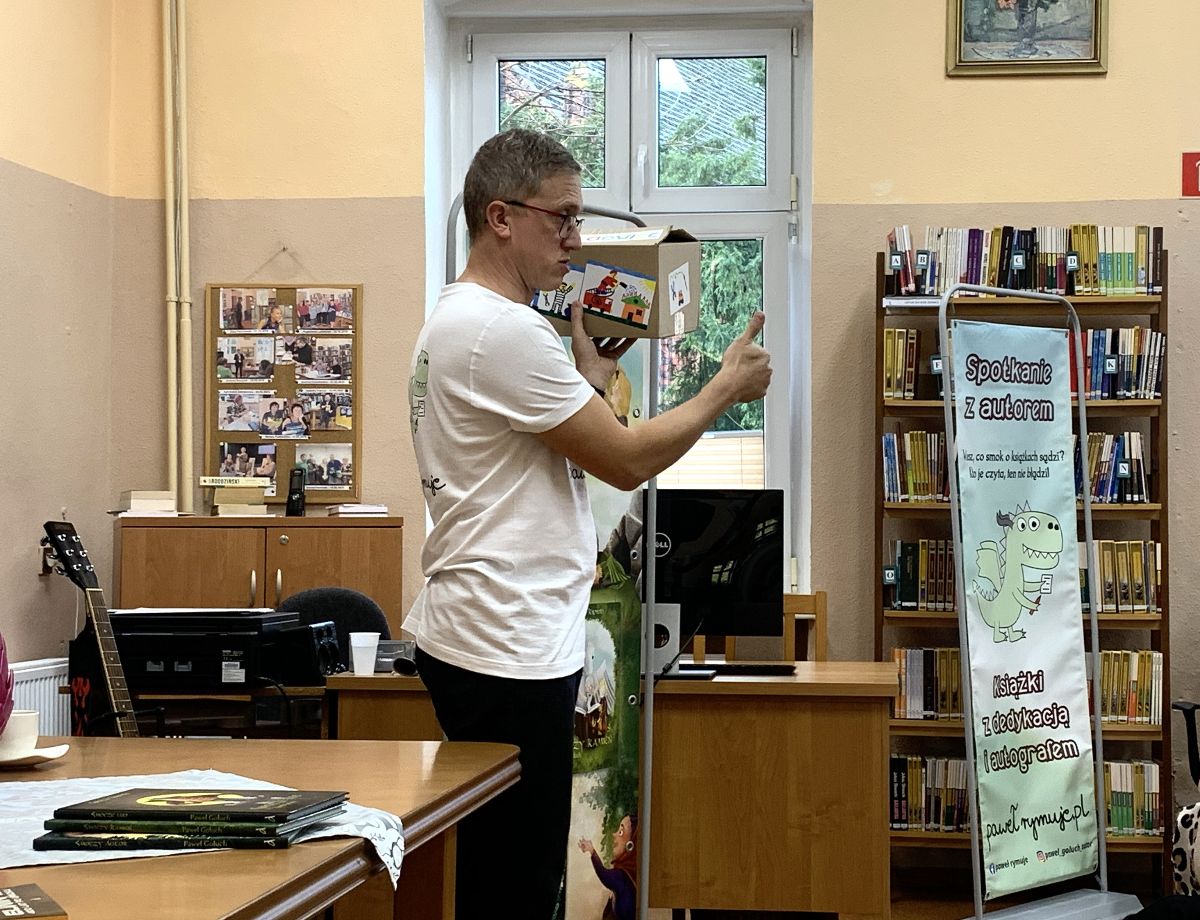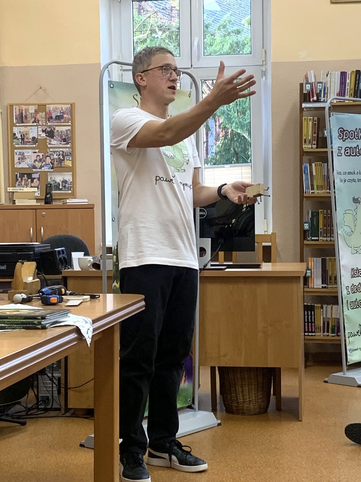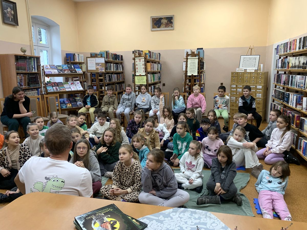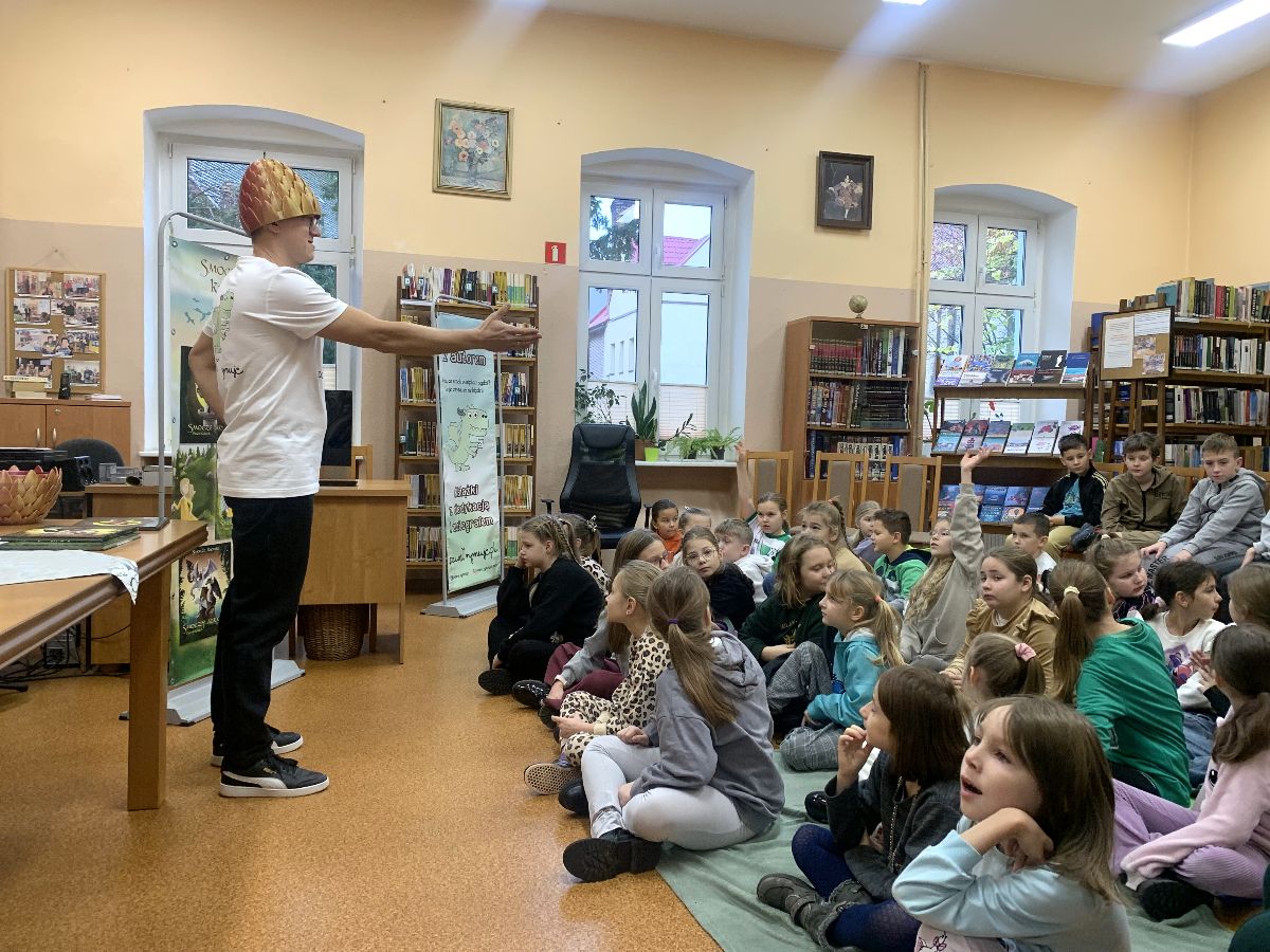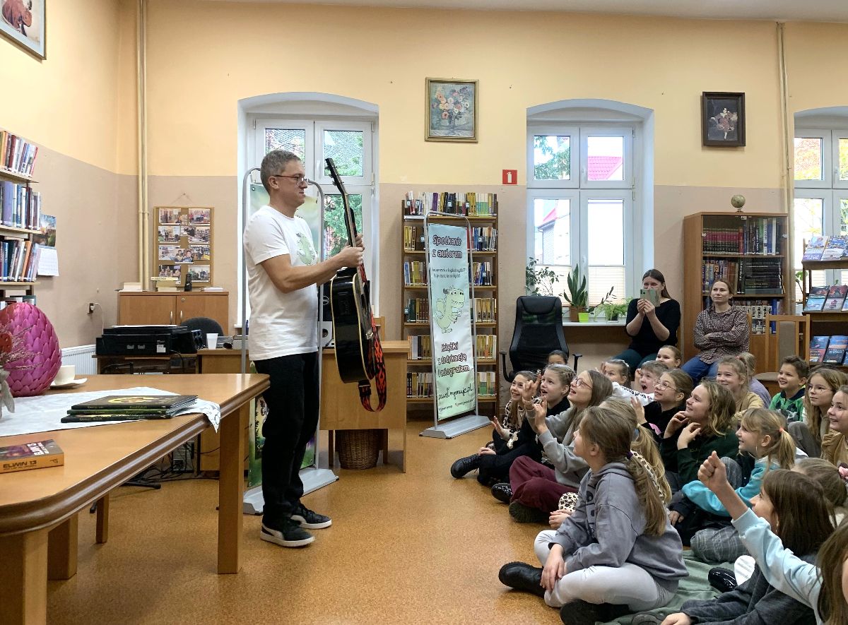 W środowy poranek, dn. 19 listopada 2025 r., gościliśmy w naszej Bibliotece p. Pawła Gołucha – autora kilkudziesięciu wierszy dla dzieci, tekstów piosenek oraz prezentujących szlachetne wartości wierszowanych książek z serii „Smocze kroniki”.