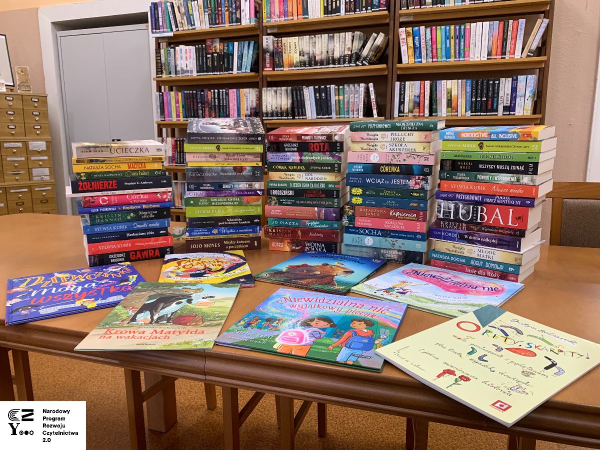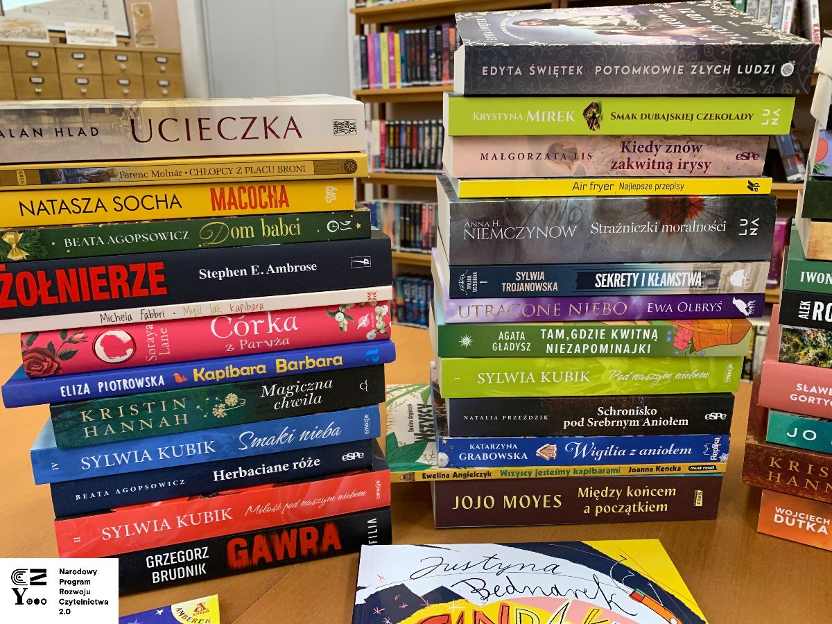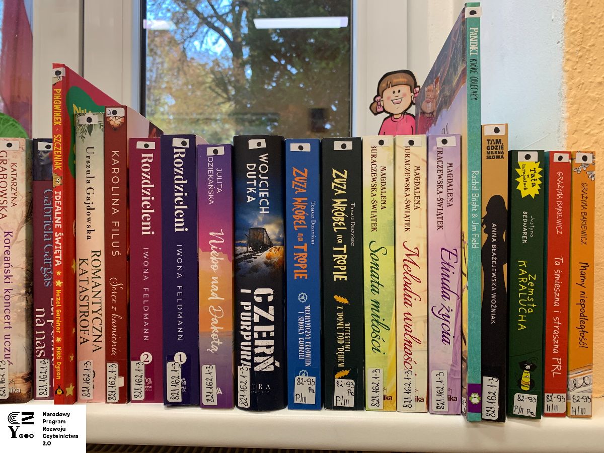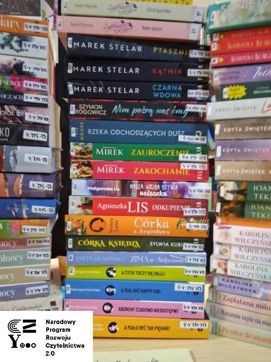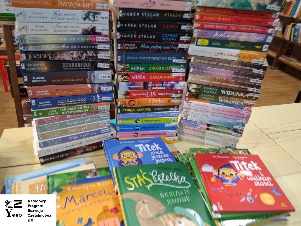 „Dofinansowano ze środków finansowych Ministra Kultury i Dziedzictwa Narodowego w ramach realizacji Narodowego Programu Rozwoju Czytelnictwa 2.0 na lata 2021-2025” oraz „Dofinansowania dla bibliotek publicznych na zakup nowości wydawniczych oraz usługi zdalnego dostępu do książek w formatach e-booków i/lub audiobooków i/lub synchrobooków – Priorytet 1, Kierunek interwencji 1.1. w ramach NPRCz 2.0”.