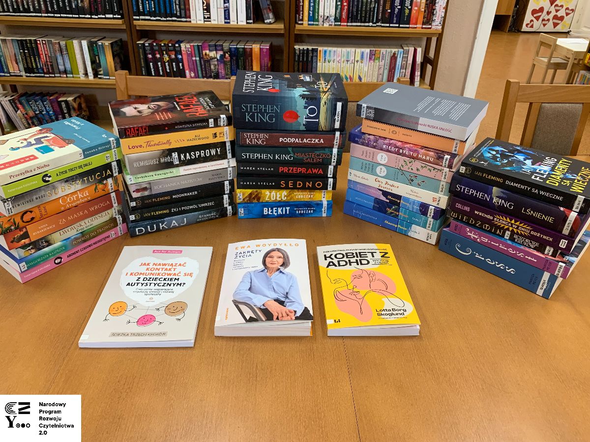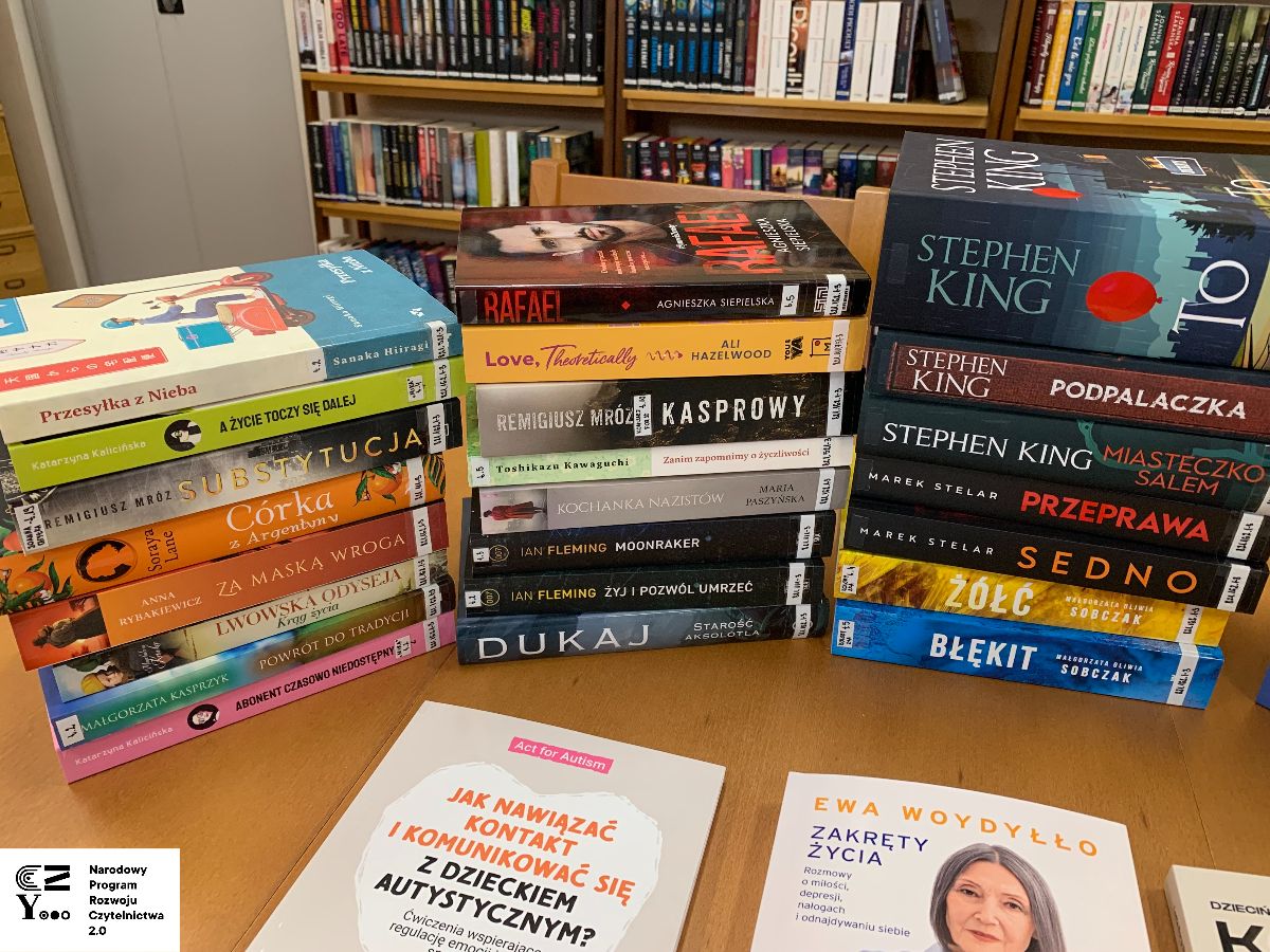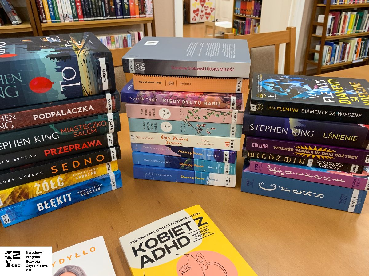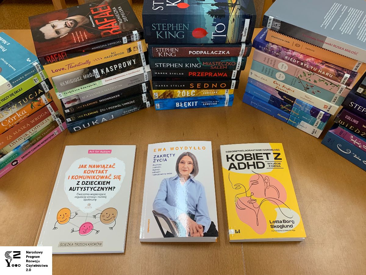 „Dofinansowano ze środków finansowych Ministra Kultury i Dziedzictwa Narodowego w ramach realizacji Narodowego Programu Rozwoju Czytelnictwa 2.0 na lata 2021-2025” oraz „Dofinansowania dla bibliotek publicznych na zakup nowości wydawniczych oraz usługi zdalnego dostępu do książek w formatach e-booków i/lub audiobooków i/lub synchrobooków – Priorytet 1, Kierunek interwencji 1.1. w ramach NPRCz 2.0”.