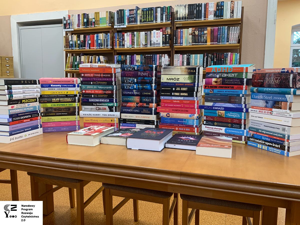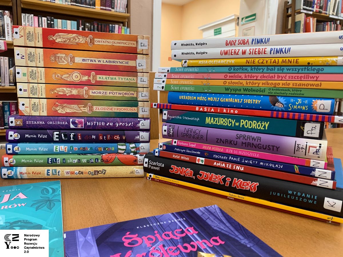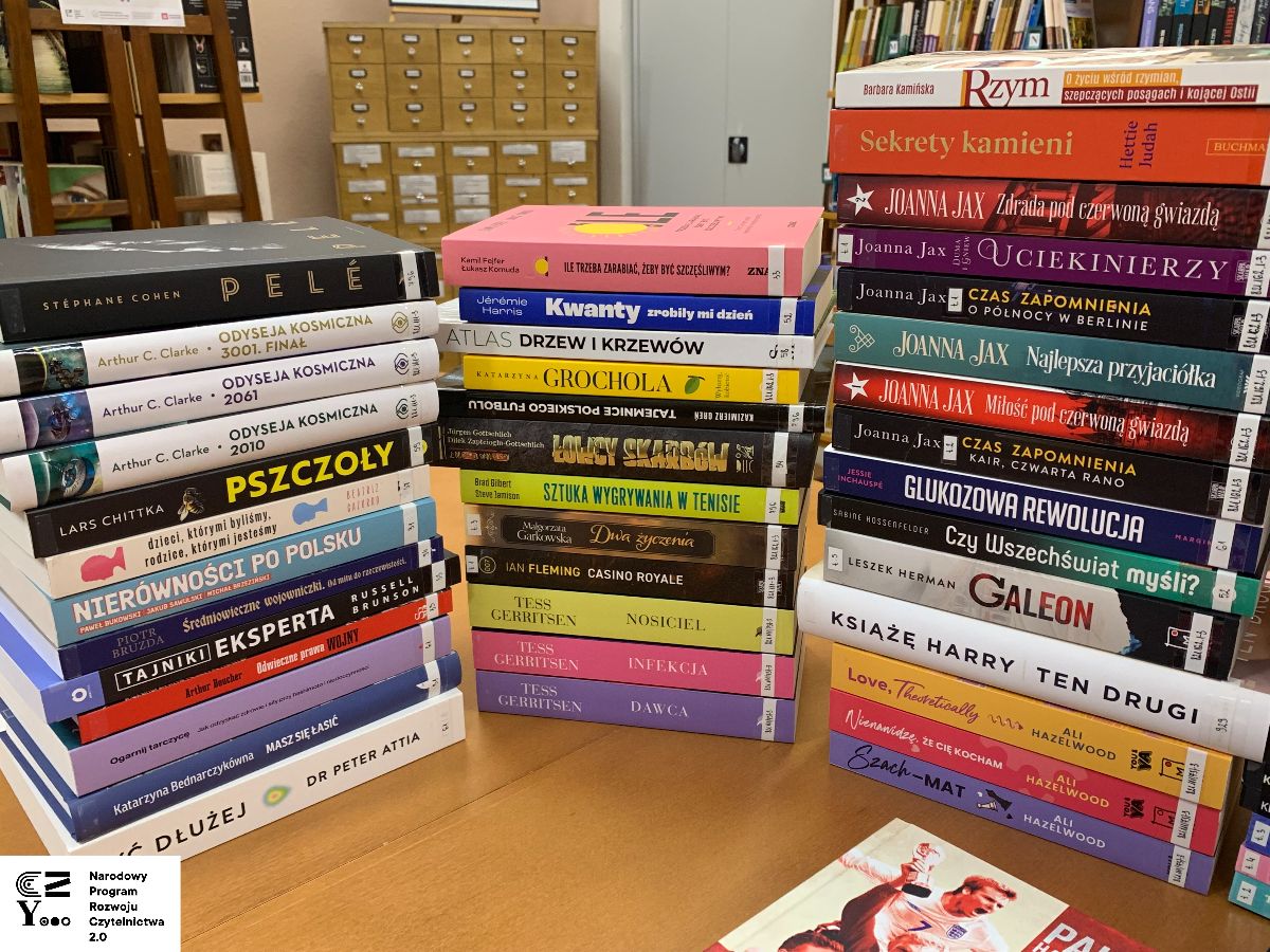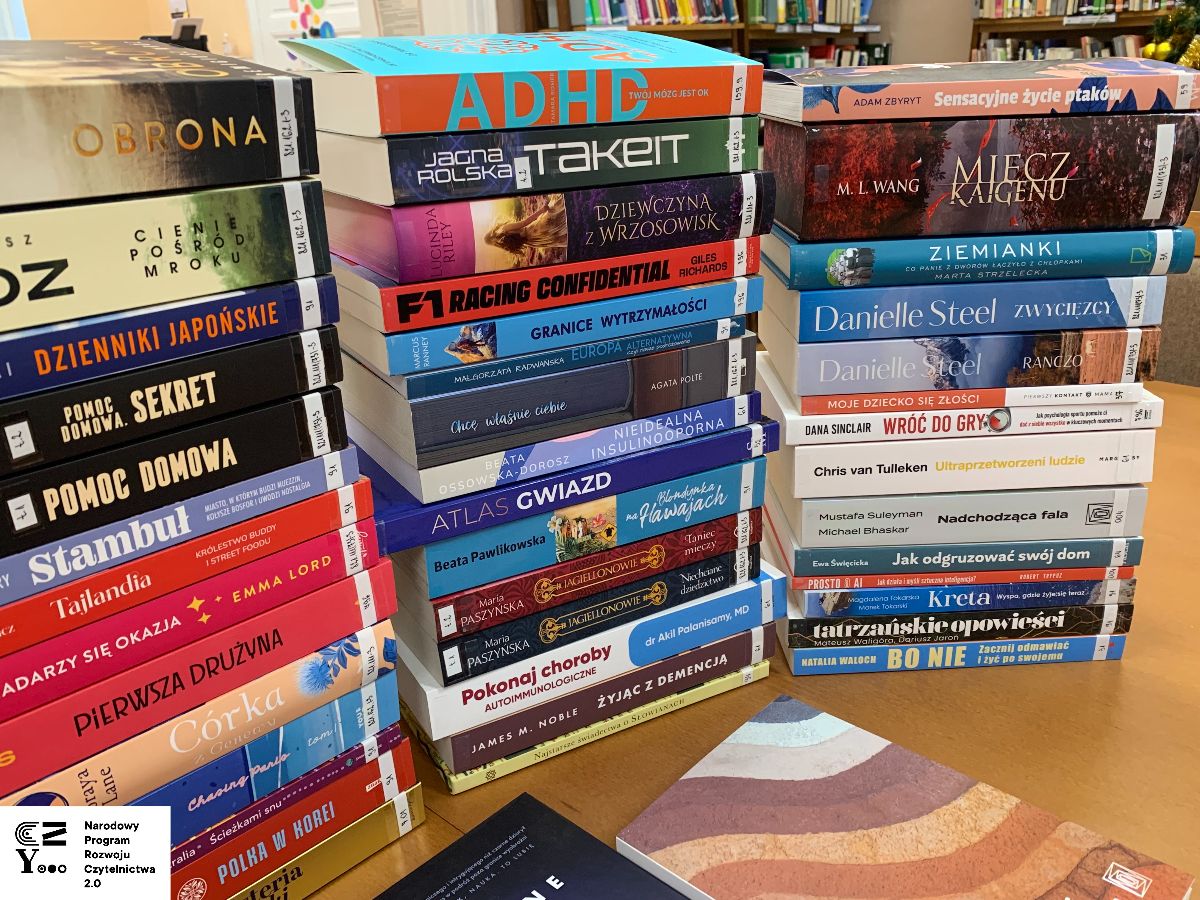 „Dofinansowano ze środków finansowych Ministra Kultury i Dziedzictwa Narodowego w ramach realizacji Narodowego Programu Rozwoju Czytelnictwa 2.0 na lata 2021-2025” oraz „Dofinansowania dla bibliotek publicznych na zakup nowości wydawniczych oraz usługi zdalnego dostępu do książek w formatach e-booków i/lub audiobooków i/lub synchrobooków – Priorytet 1, Kierunek interwencji 1.1. w ramach NPRCz 2.0”.