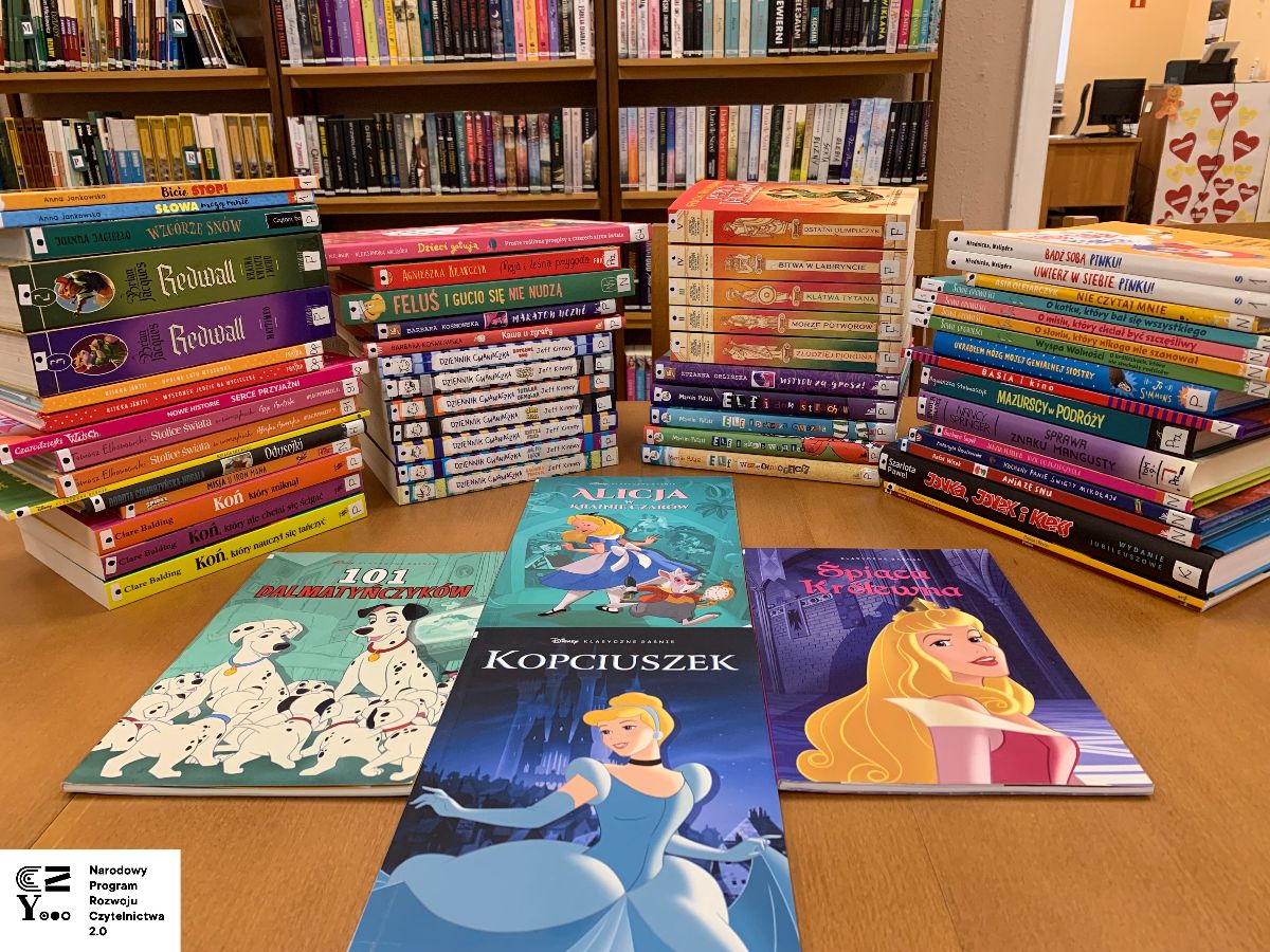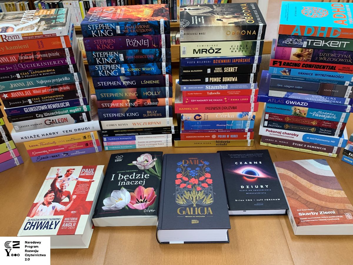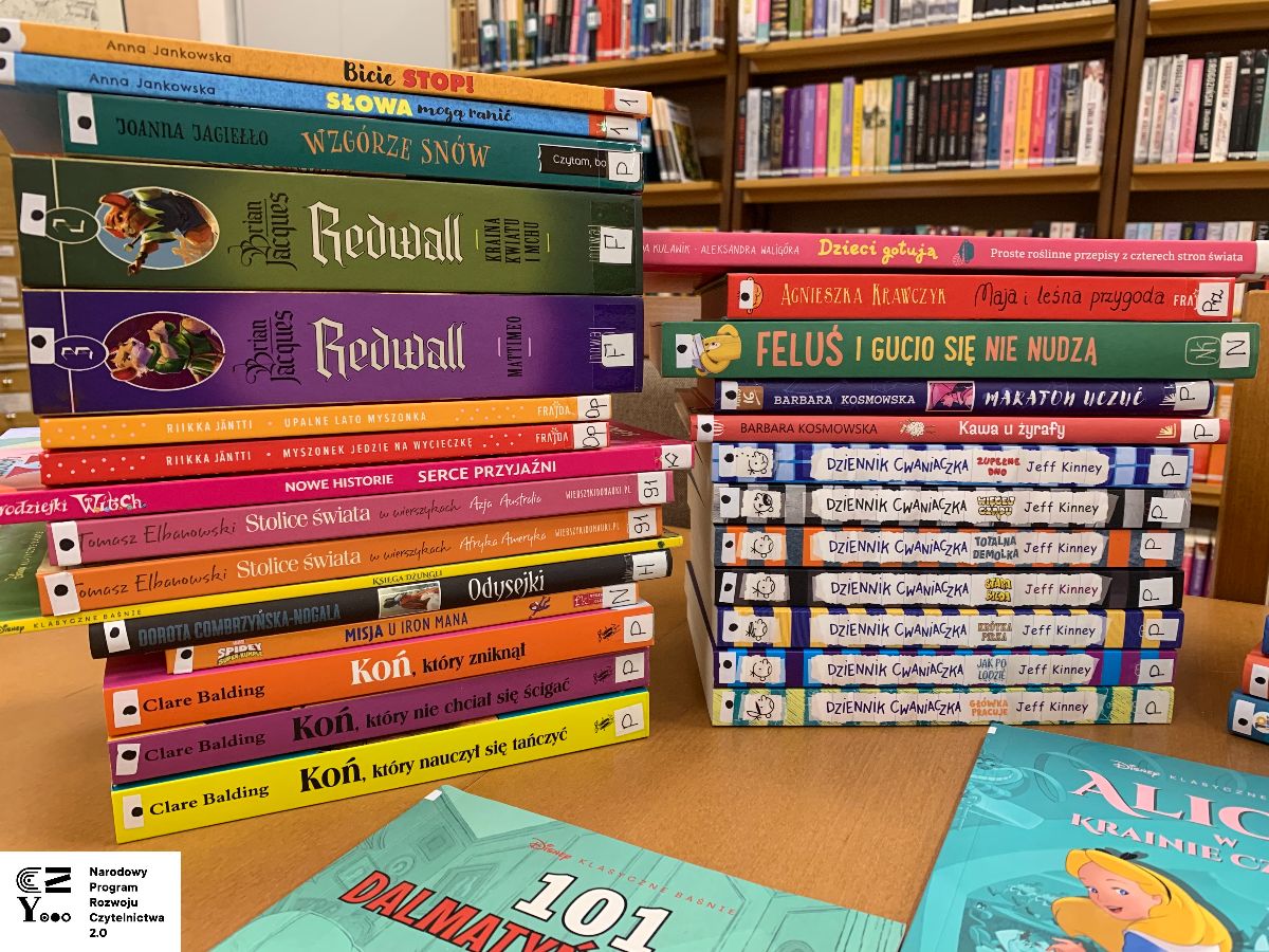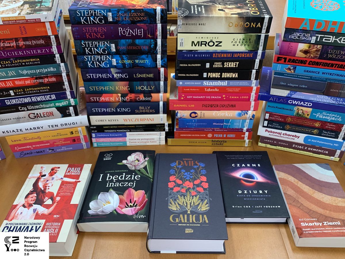 „Dofinansowano ze środków finansowych Ministra Kultury i Dziedzictwa Narodowego w ramach realizacji Narodowego Programu Rozwoju Czytelnictwa 2.0 na lata 2021-2025” oraz „Dofinansowania dla bibliotek publicznych na zakup nowości wydawniczych oraz usługi zdalnego dostępu do książek w formatach e-booków i/lub audiobooków i/lub synchrobooków – Priorytet 1, Kierunek interwencji 1.1. w ramach NPRCz 2.0”.